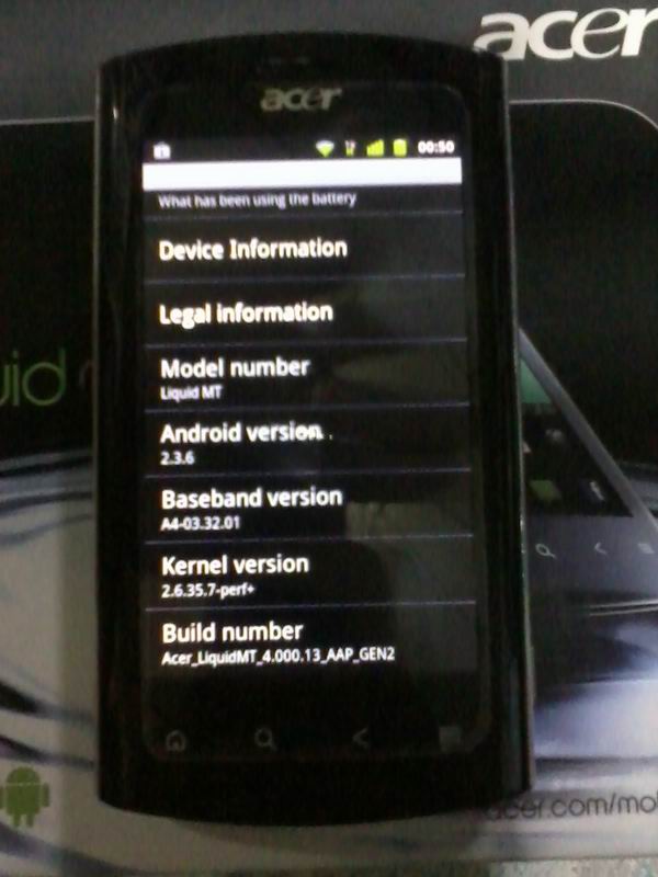 ขาย Acer Liquid Metal S120 อุปกรณ์ยกกล่อง 4,000 บาท Android 2.3.6