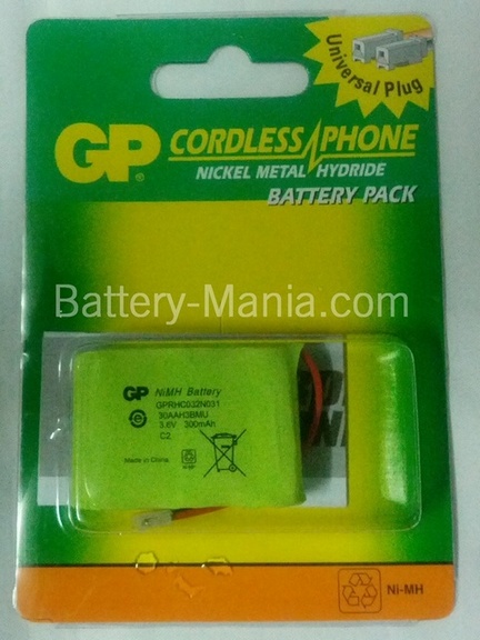 แบตเตอรี่ โทรศัพท์ไร้สายGPแท้ 100% สำหรับทดแทนแบตพานาโซนิค HHR-P301 (TYPE 2)
