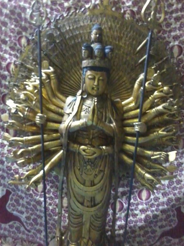 ให้บูชาเจ้าแม่กวนอิมพันกร ไม้หอมแกะเก่า จากฑิเบศ ลงรักปิดทองเก่าหนาทั่วทั้งองค์ งานเก่า อายุ 50 ปี งานฝีมือช่างจากจีนเก่า ผ่านพิธีกรรม ต้องการให้ผู้ศรัทธาเช่าเก็บไว้บูชา สนใจติดต่อ.. 085-168-6533 ด่วน...