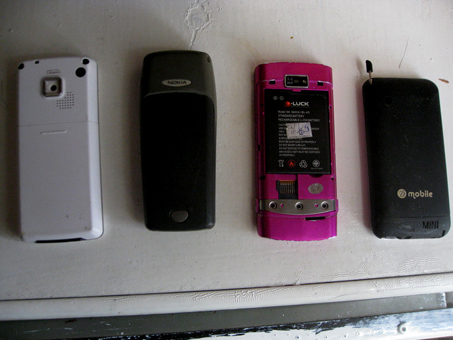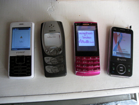 ขายโทรศัพท์ 4 เครื่อง 1000.- โละขายครับ ราคาถูกไช้งานได้ทุกเครื่องครับ ตัวสีชมพูมีรอยบ้างครับ ถ้เครื่องเดียวเครื่องละ 300.- nokia ขาวดำ 200.- ตจว รับส่ง พกง ครับ