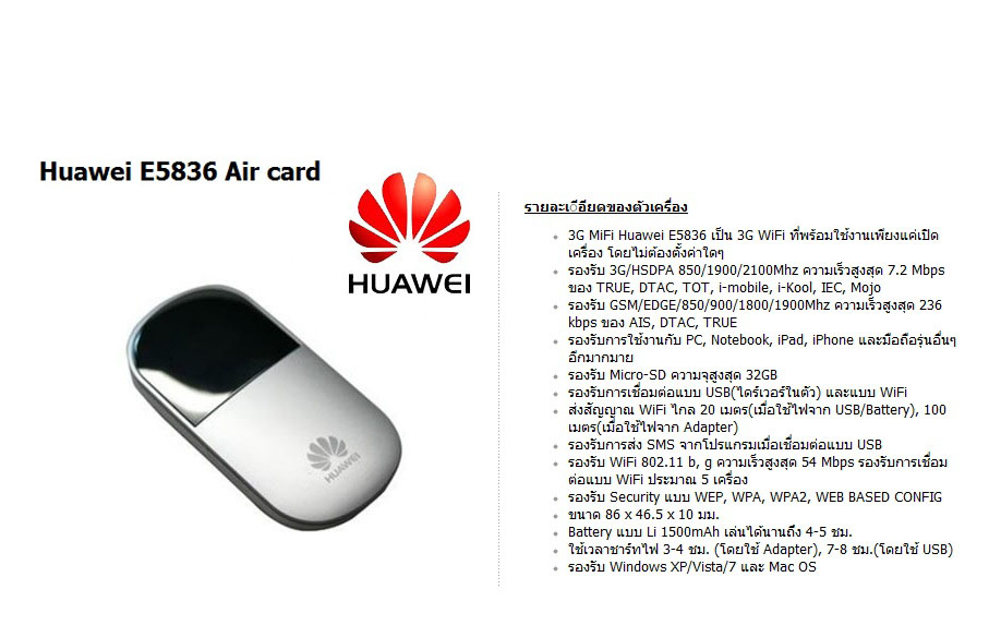 ขาย Huawei E5836 Air Card ของใหม่ ประกัน 1 ปี