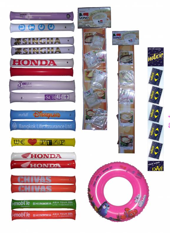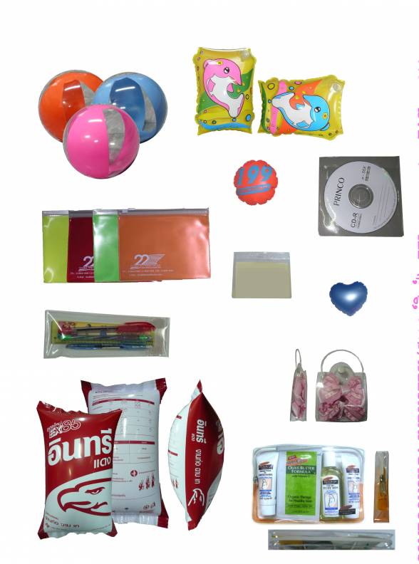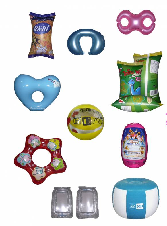 และแบบ ไม่เป่าลม เช่น พวงกุญแจ กระเป๋าพลาสติก ถุงพลาสติก ซองใส่ CD ปกสมุด ซองใส่พาสปอร์ต แท็คคล้องกระเป๋า เป็นต้น
