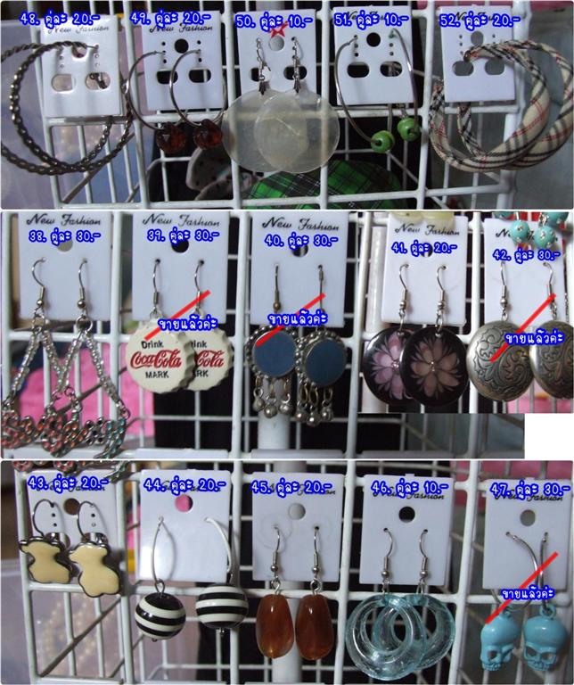 คิดราคาเหมา ตุ้มหู 72 คู่ สร้อย 8 เส้น ( มีแถมๆ นอกจากนี้อีกค่ะ) = 800บาท รวมส่งแบบลงทะเบียนแล้วค่ะ มีถุงซิปใส่ให้ทุกคู่นะคะ