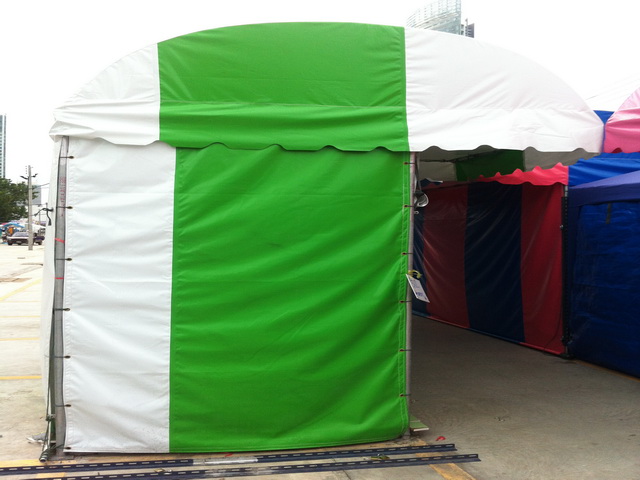 ขายเต้นท์ผ้าใบทรงโค้ง (ทรงโรมัน) สีขาว+เขียวอ่อน ขนาดกว้าง 4x1.5 เมตร (ถ้ารวม ปะตูปิด ลึก 2.40 เมตร)ราคาพิเศษ 10,500 บาท + ค่าติดดั้งสนใจติดด่อ084-3425862