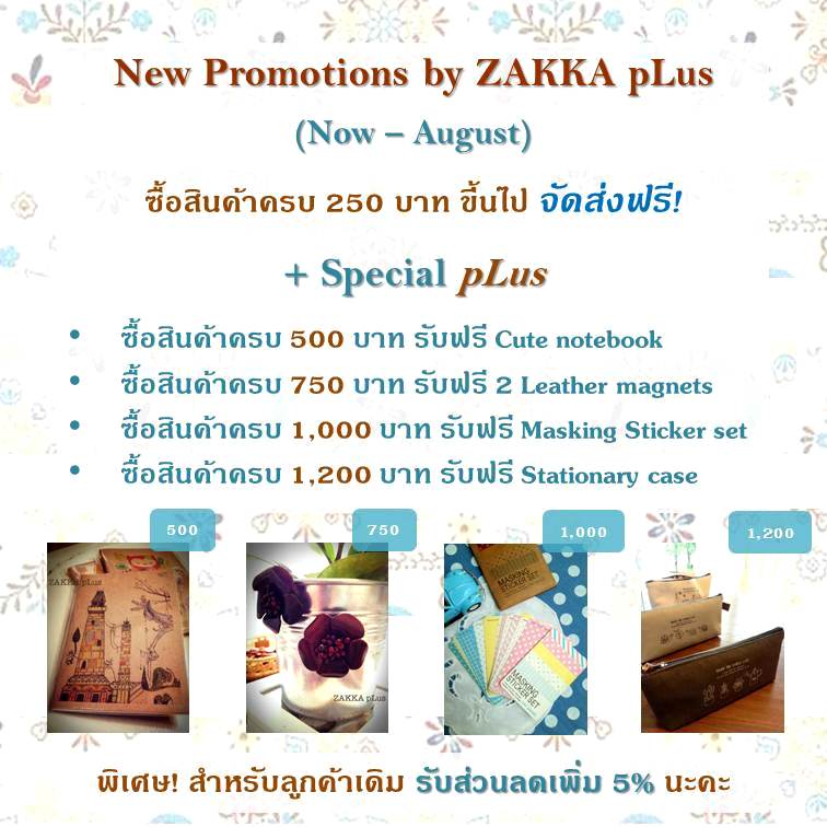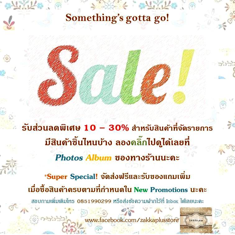 ตอนนี้ทางร้านมีสินค้าหลายชิ้นที่จัดรายการส่วนลดพิเศษ 10 - 30% อยู่นะคะ ลองคลิ๊กดูได้ที่ www.facebook.com/zakkaplusstore แล้วคลิ๊กต่อไปที่ Photos Album ของทางร้านนะคะ