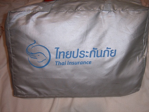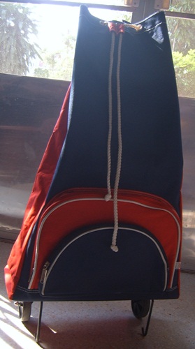 เป็นผ้าใบหนาอย่างดีสีน้ำเงินแถบแดง มีช่องซิบด้านหน้าสองชั้น