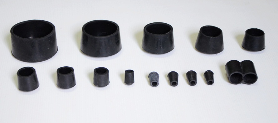 ลูกยางสวมขาโต๊ะ, ลูกยางสวมขาเก้าอี้, ลูกยางสวมแป๊ปและอุดแป๊ป มีทั้งแบบกลมและเหลี่ยม สวมนอกและสวมใน มีขนาดเริ่มต้นตั้งแต่ 6 มม. หรือ 1/4" ไปจนถึง 102 มม. หรือ 4" มีทั้งแบบยางและพลาสติก