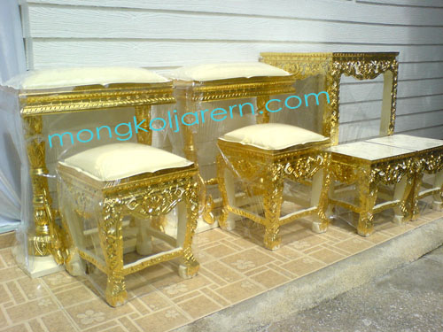 ขาย ชุดตั่งรดน้ำสังข์ แกะลายปิดทอง และ อุปกรณ์พาน สังข์ เครื่องใช้ต่างๆ สำหรับพิธีรดน้ำสังข์ ในราคากันเอง