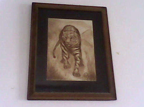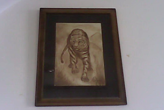 ขายภาพวาดลายเสือ กรอบไม้สักทอง ขนาด 35x45 เซ็นติเมตร สวยคลาสสิค ราคา 1200 บาท