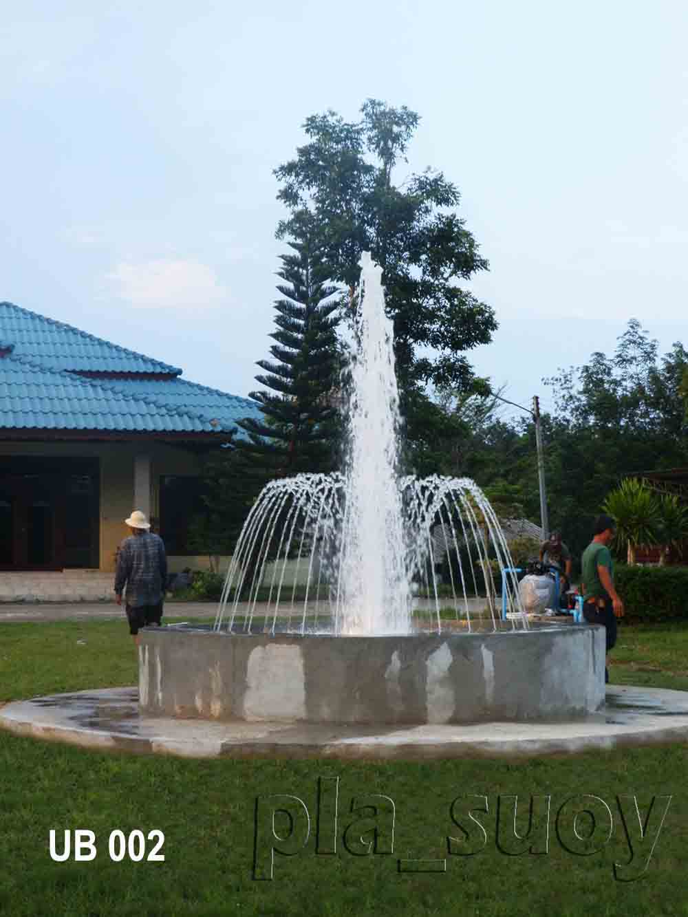 1. น้ำพุหัวกลาง ใช้หัวน้ำพุทรงต้นสน 1 หัว ขนาด 2” ยิงสูง 2.00 ม.ใช้ปั๊มไดโว่1 ตัว
