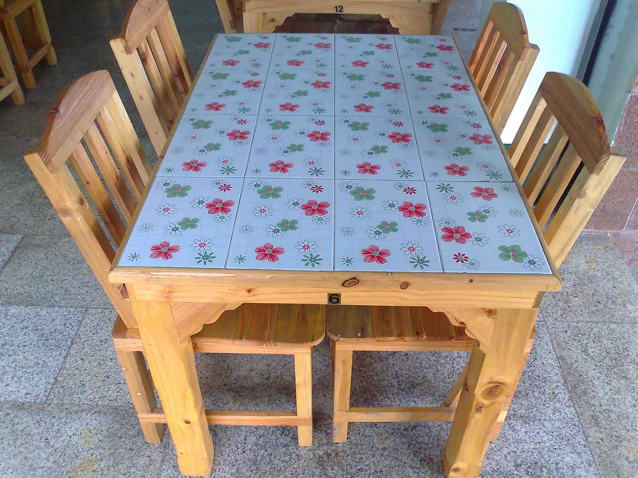 ขายโต๊ะไม้สนนอก ปูกระเบื้อง