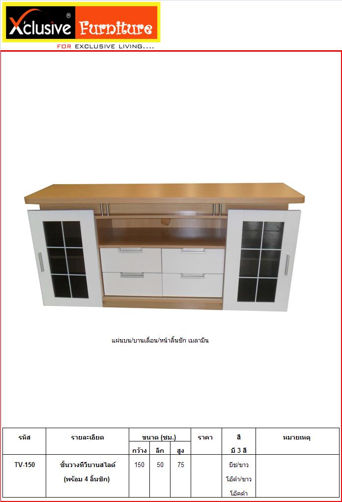 ขายชั้นวาง TV (TV-150) ยี่ห้อ Woodtech สินค้าจากโรงงาน ราคาพิเศษ สินค้าเกรดเดียวกับ INDEX ทำจากไม้ MDF แข็งแรง ทนทาน ดูสินค้าเพิ่มเติมที่ http://www.bywoodtech.ran4u.com หรือ http://www.bywoodtech.wordpress.com หรือติดต่อ ชัยวัฒน์ 081-5596380