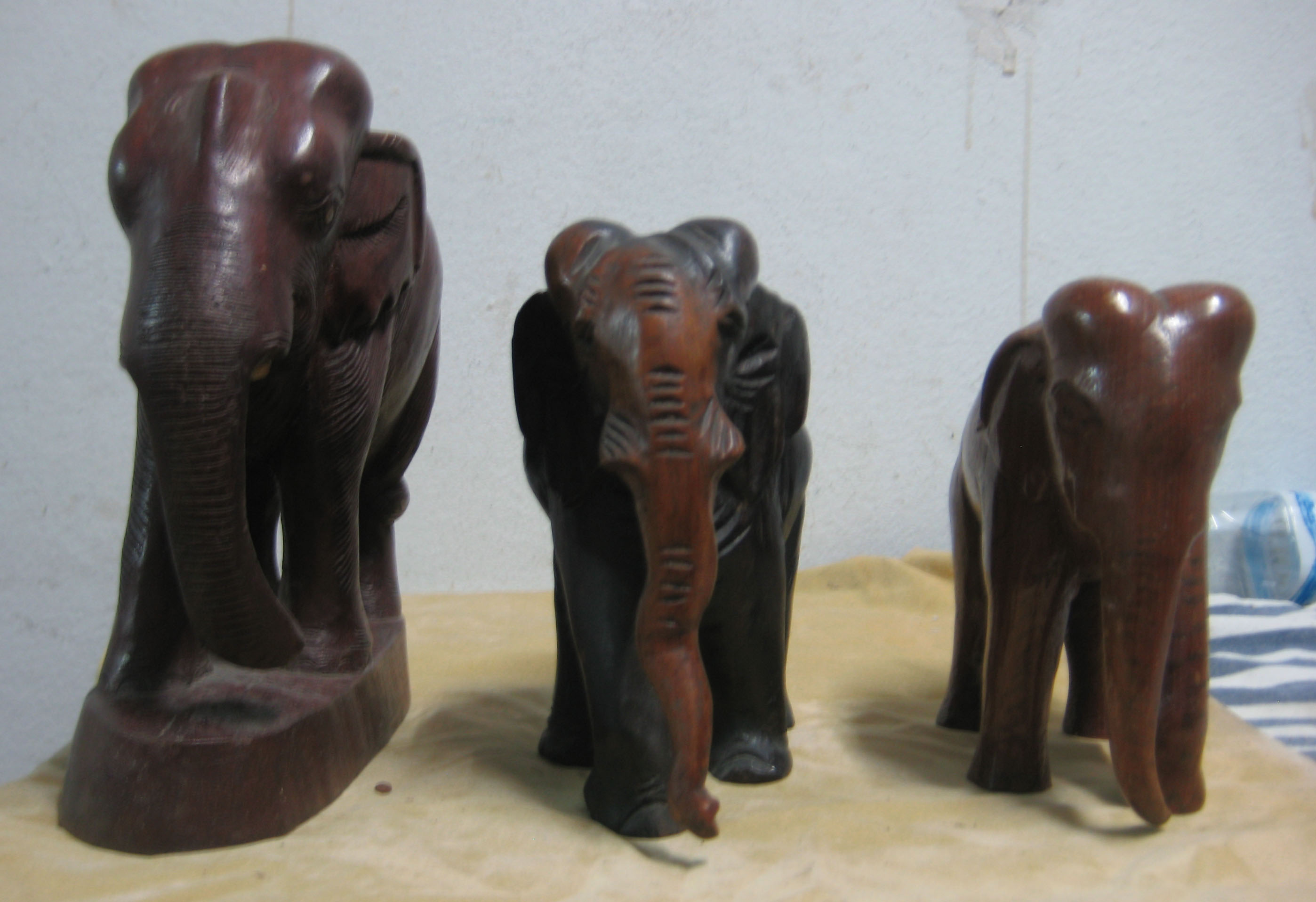 ช้างไม้แกะสลัก ตัวขวากับซ้าย300 ตัวกลาง700