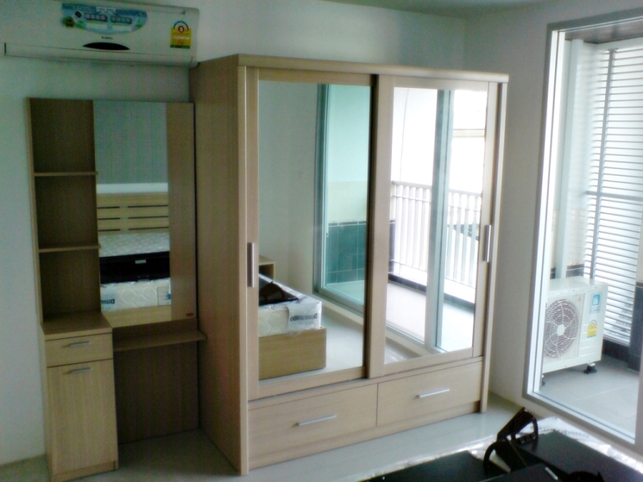 4. ตู้เสื้อผ้าใหญ่ บานสไลด์ หน้ากระจกเงาเต็ม สีไลท์โอ๊ค winner ขนาด 160x67x200 cm. ขาย 7,000