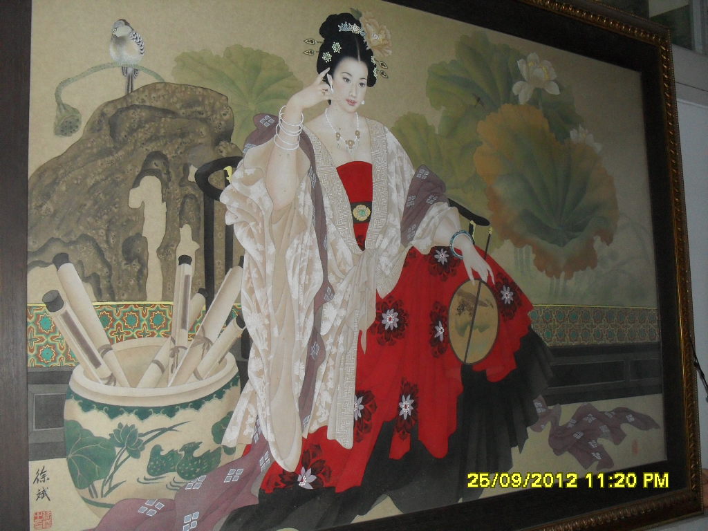 ขายภาพเขียนสีน้ำบนผืนผ้าไหมจีน รูปหญิงงามหนึ่งในสี่ของประวัติศาสตร์จีน แม่นางหยางกุ้ยเฟย จากศิลปินจากประเทศจีน พร้อมกรอบไม้สักสีทองขนาด 102x143 ซม.กระจกตัดแสงสะท้อน เหมาะสำหรับงานตกแต่งบ้าน สำนักงาน บริษัท สถานที่โอ่โถง หรือเป็นของขวัญที่มีคุณค่าสำหรับผู้ใหญ่ที่เคารพ สนใจติดต่อ คุณณัฐ 083-608-8080