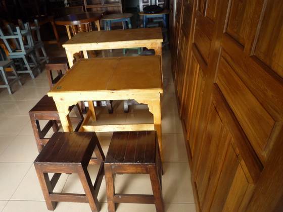 โต๊ะ เก้าอี้ เคาน์เตอร์ ร้านอาหาร สภาพดี ใช้มา 3 เดือนเอง นำไปเปิดร้านอาหารได้เลย งานแข็งแรงมาก ไม้สนนอก 1. โต๊ะใหญ่ มี 4 ตัว ขนาด กว้าง70 ยาว 124 cm. ขายเหมา 2,800 บาท 2. โต๊ะเล็ก มี 3 ตัว ขนาด กว้าง75 ยาว 84 cm. ขายเหมา 1,800 บาท 3. ม้านั่ง มี 28 ตัว กว้าง 31.5 ยาว 31.5 ขายเหมา 6,000 บาท 4. เคาน์เตอร์ไม้ ตัวยาว มีหลังคาจั่ว และไฟส่อง ขนาด กว้าง 80 ยาว 183 สูง 80 cm 5. เคาน์เตอร์ไม้ ตัวสั้น ขนาด กว้าง 81 ยาว 103 สูง 80 cm รายการ 4,5 ขายเหมา 5,000 บาท รับรองงานไม้แข็งแรงมากไม่เหมือนงานไม้ทั่วไป ของอยู่แถวรามอินทรา