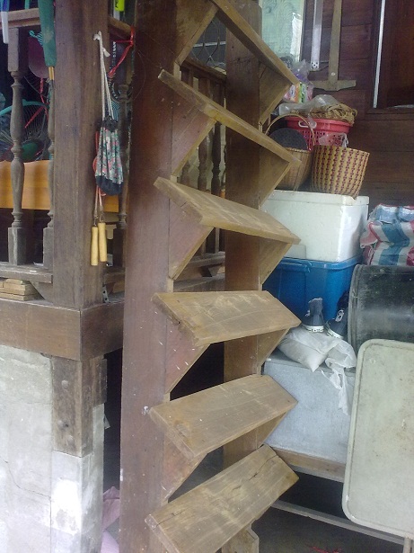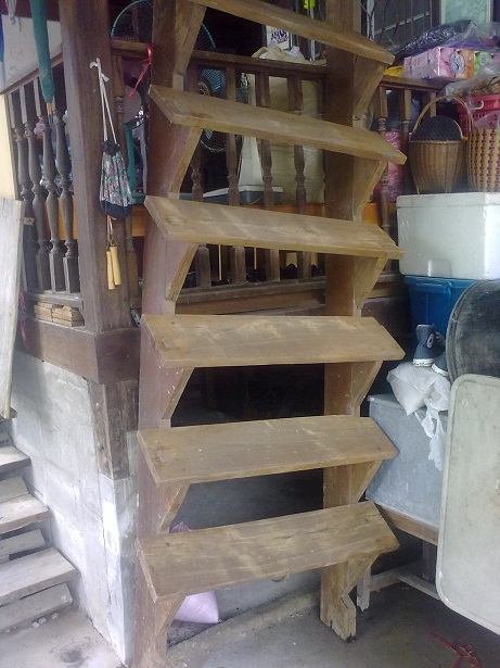 บรรไดไม้สักรื้อมาจากบ้านเก่า เป็นบรรไดช่วงเลี้ยวสำหรับขึ้นชั้นสองมีอยู่หกขั้น แข็งแรง ทนทาน ใครสนใจมาดูได้เรวดี ติดต่อที่ 087-3209668 คิด