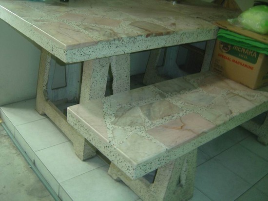 โต๊ะหินอ่อน โต๊ะกว้าง 90 ยาว 180 ซม. ม้านั่งกว้าง 45 ยาว 180 ซม. เข้าชุดกัน อย่างละ 1 ตัว สั่งทำสีพิเศษชมพู/เทา สภาพแข็งแรงทนทานยังโอเค