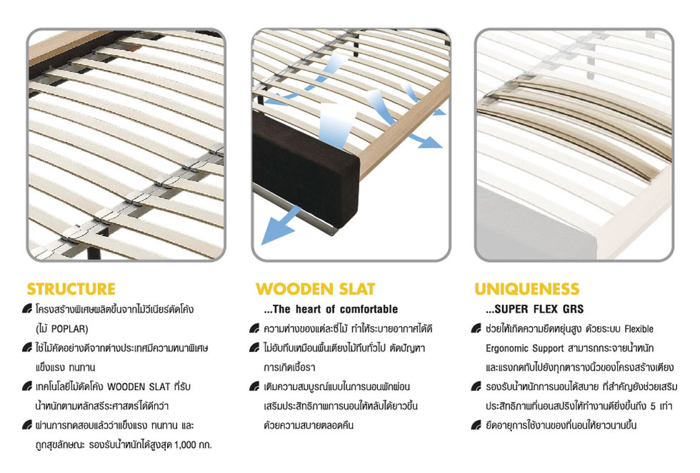 ขายเตียงนอนขนาด 3.5 ฟุต ยี่ห้อ Index (ไม่รวมฟูกนะครับ) สภาพดีมาก จำนวน 2 เตียง ซื้อมาประมาณ 2 ปี ใช้งานน้อยมาก ส่วนใหญ่ลูกจะมานอนรวมกันที่ห้องนอนใหญ่ เลยไม่ค่อยได้นอน ต้องการขายเพราะจะซื้อรุ่นใหม่แบบ 2 ชั้น ห้องนอนพื้นที่จำกัด โครงสร้างเตียงเป็นแบบ SUPER FLEX GRS ดูข้อมูลได้จาก link ของ Index ที่แนบมา http://www.indexlivingmall.com/4joy/joyquality/super-flex.php