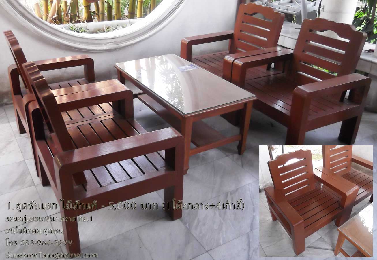 1. ชุดรับแขก ไม้สักแท้ (1โต๊ะกลาง+4เก้าอี้)- 5,000 บาท