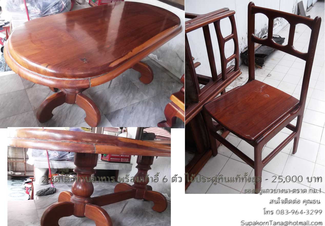 2. ชุดโต๊ะทานอาหาร พร้อมเก้าอี้ 6 ตัว ไม้ประดู่หินแท้ทั้งชุด - 25,000 บาท