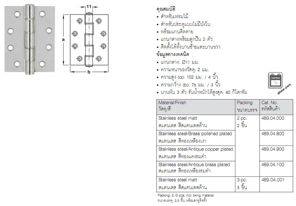 บานพับสแตนเลสยี่ห้อ HAFELE รุ่น 489.04.100 สีทองเหลืองรมดำ ขนาด4"x 3" ระบบลูกปืน(ทำจากstainless304) ของใหม่แท้100% ราคาชุดละ180.- ติดต่อ022512637 พรเทพ
