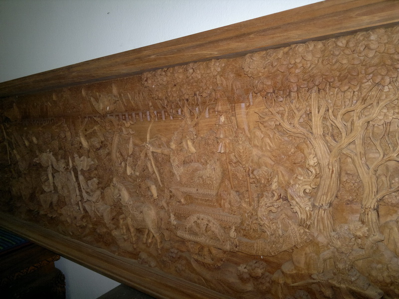 ขายไม้สักแกะสลักรูปรามเกียรติ์ ยาว 2.15 เมตร กว้าง 0.61 เมตร