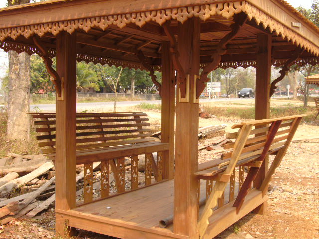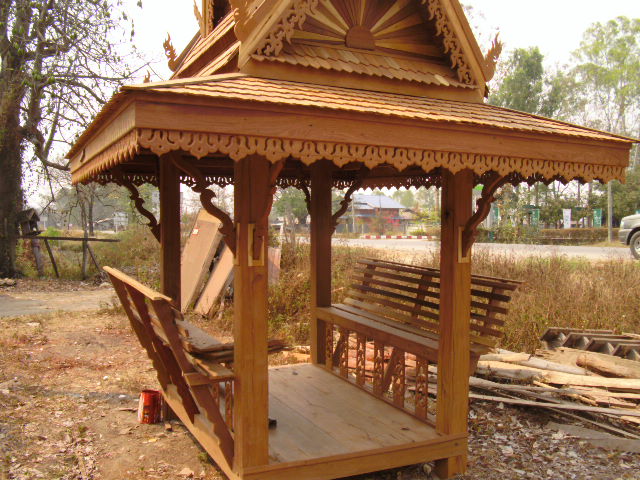 รับผลิตซุ้มไม้ทรงไทยส่งทั่วไทย กว้างประมาณ 140 ซม.ยาว200 ม.ทาแลคเกอร์สำหรับนั่งพักผ่อนในสวน หรือรีสอร์ท หรือมุมนั่งเล่นหน้าบ้าน หรือซื้อถวายวัดได้บุญกุศลร่มเย็นเป็นสุข โทร 089 9551369