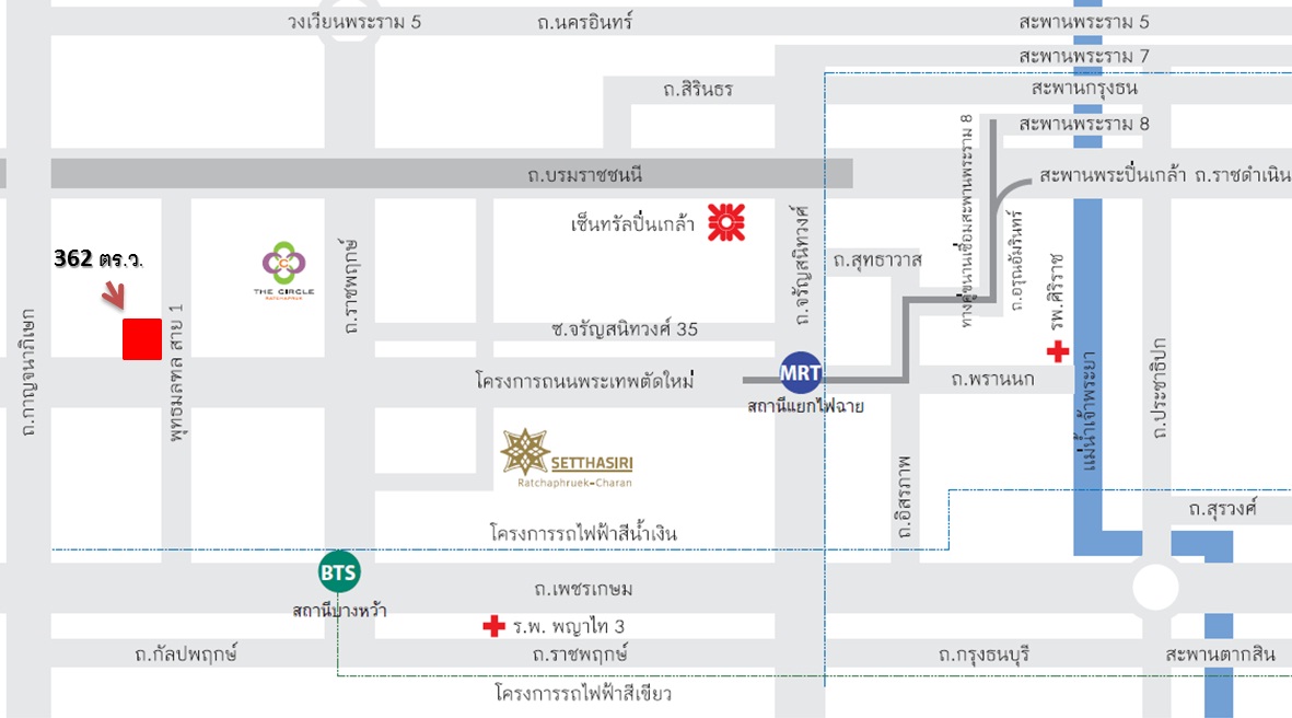 ขายที่ดินเปล่าหัวมุม ถ.พุทธมณฑลสาย1 ติดกับ ถ.พัฒนา(เชื่อมระหว่างจรัญกับสาย4) สายพระเทพ เนื้อที่ 362 ตร.ว