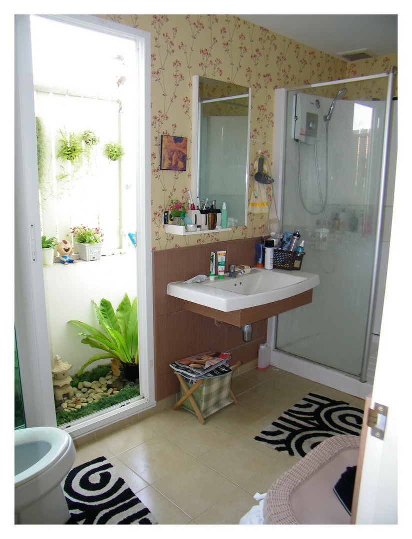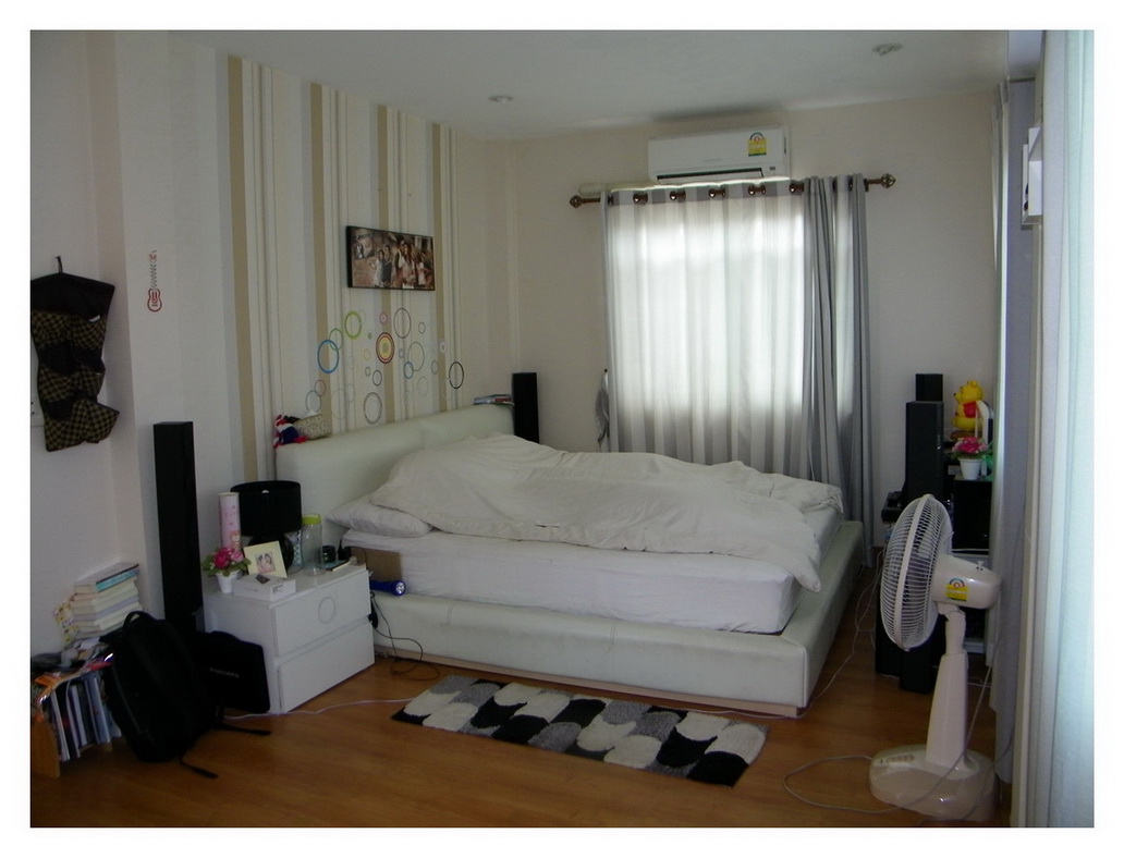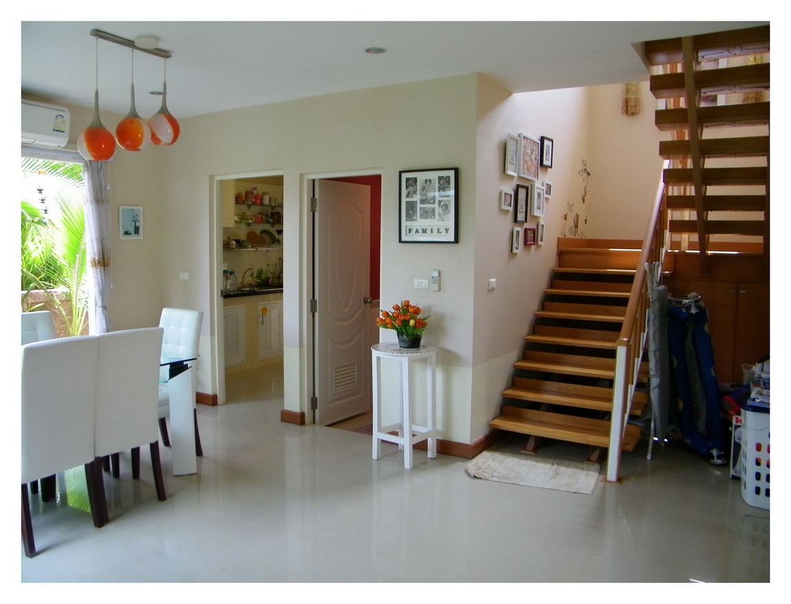 บ้านบรรยากาศโปร่งสบายสไตล์รีสอร์ท หน้าบ้านกว้างถึง 27 เมตร ตำแหน่งบ้านกว้างขวางแยกเป็นส่วนตัวไม่แออัดติดกับเพื่อนบ้าน มี 3 ห้องนอน 2 ห้องน้ำ ห้องรับแขก ห้องทานข้าว 2 ครัว พื้นที่ใช้สอยกว่า 140 ตารางเมตร พื้นชั้นล่างเป็นหินแกรนิตโต ชั้นบนและบันไดเป็นไม้ลามิเนต ครัวในบ้านบิวท์อินตกแต่งสวยด้วยโมเสค ต่อเติมเพิ่มส่วนครัวไทยนอกบ้าน มีเครื่องปรับอากาศ 3 เครื่อง ผ้าม่าน 2 ชั้น จอดรถในบ้านได้ 2 คัน ติดตั้งระบบสัญญาณกันขโมยทั้งหลัง ถังเก็บน้ำขนาด 1000 ลิตรและปั๊มน้ำ พร้อมอยู่