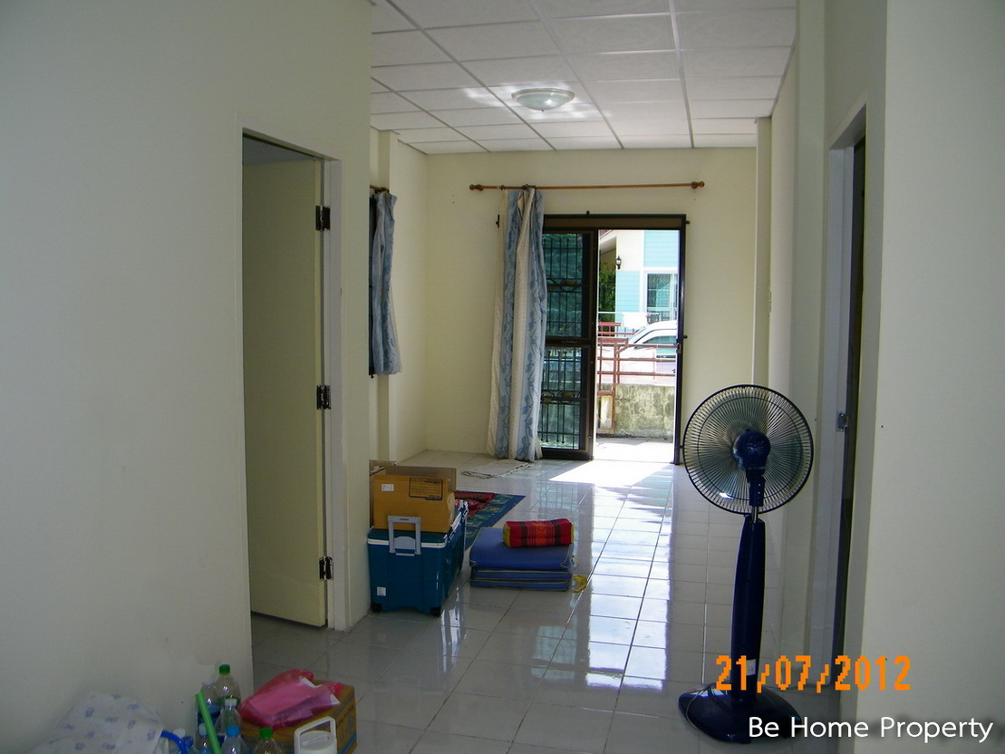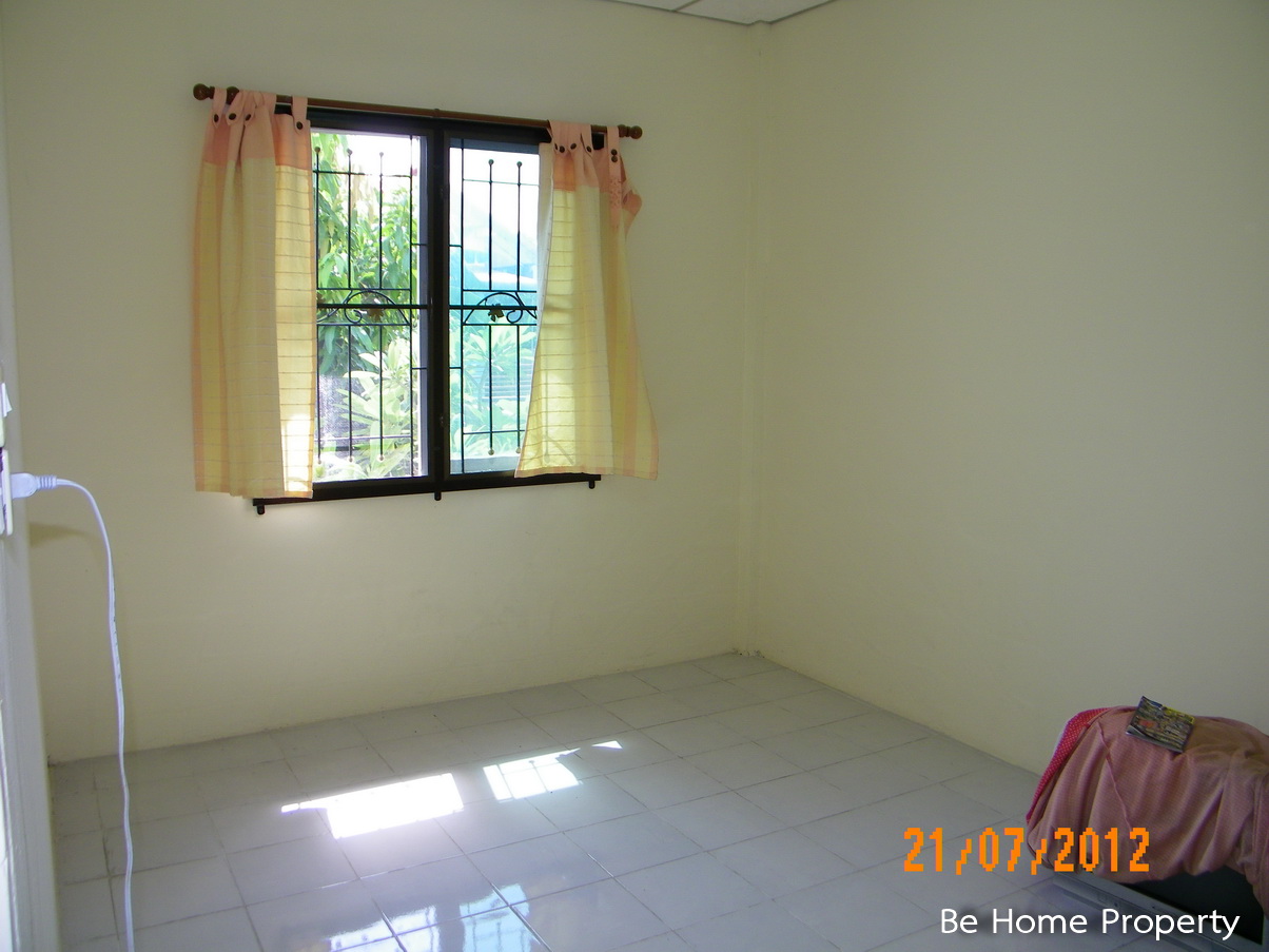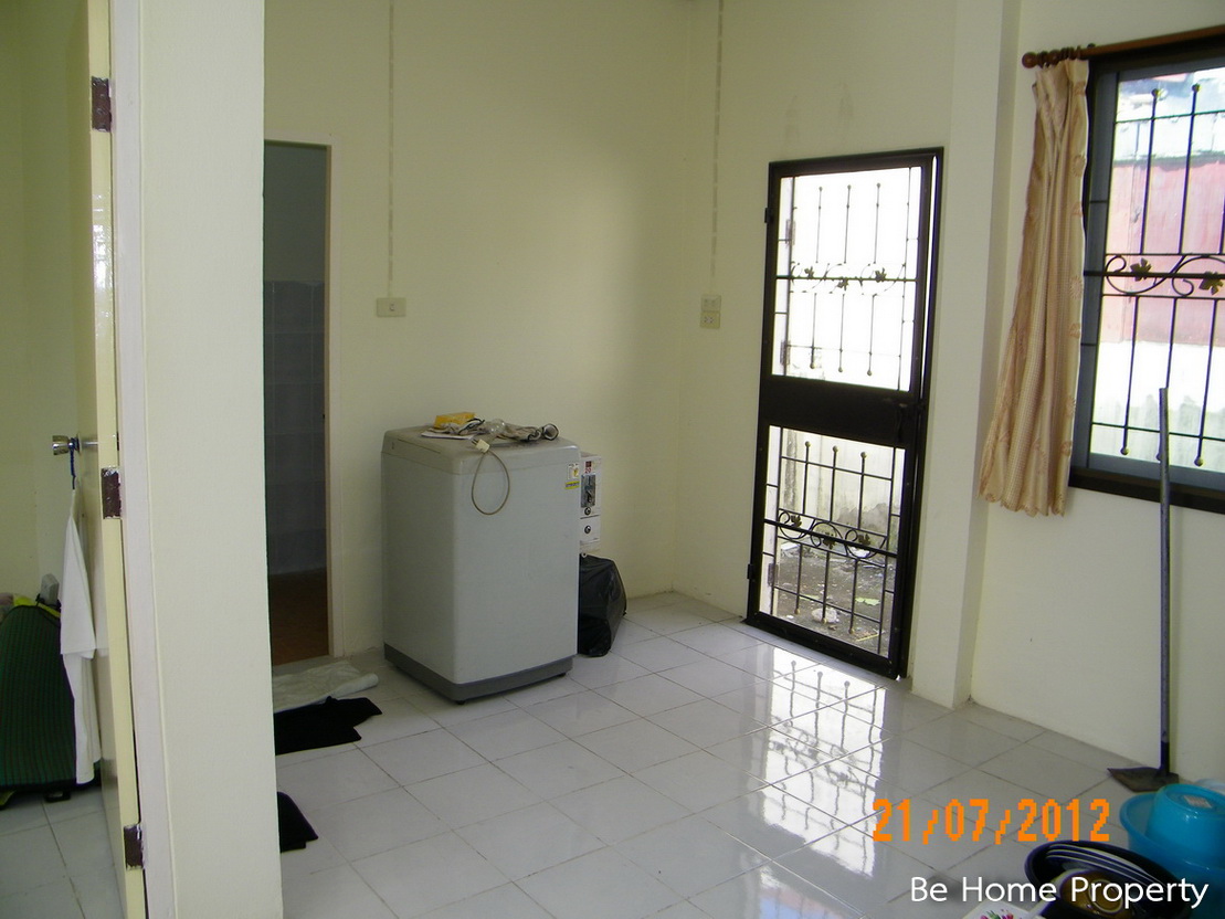 บ้านแฝดชั้นเดียว หน้ากว้างถึง 10 เมตร หลังบ้านกว้างสามารถขยายห้องนอนและส่วนครัวได้อีกกว้าง ติดมุ้งลวด ผ้าม่าน และเหล็กดัดอย่างดี พื้นปูกระเบื้อง จอดรถในบ้านได้ 1 คัน