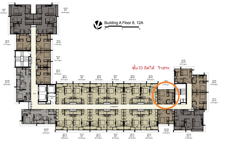2.ห้องอยู่ ตึก A ชั้น 8 แบบ A8-07 ขนาด 21.33 ตารางเมตร แบบ 1 ห้องนอน ด้านทิศใต้ รับลมทั้งปี วิวสระนัำโครงการ ขาย 2.4 ล้านบาท ผ่อน 10,300 บาท/เดือน