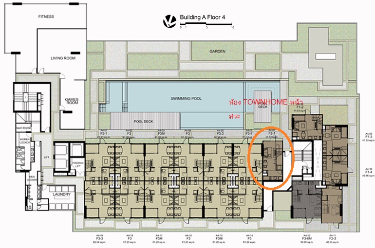 3.ห้องอยู่ ตึก A ชั้น 4-5 แบบ A4-07 TOWNHOME 2 ชั้น ขนาด 43.72 ตารางเมตร แบบ 1 ห้องนอน ด้านทิศใต้ รับลม วิวสระว่ายน้ำ ขาย 5.08 ล้าน ผ่อน 21,700 บาท