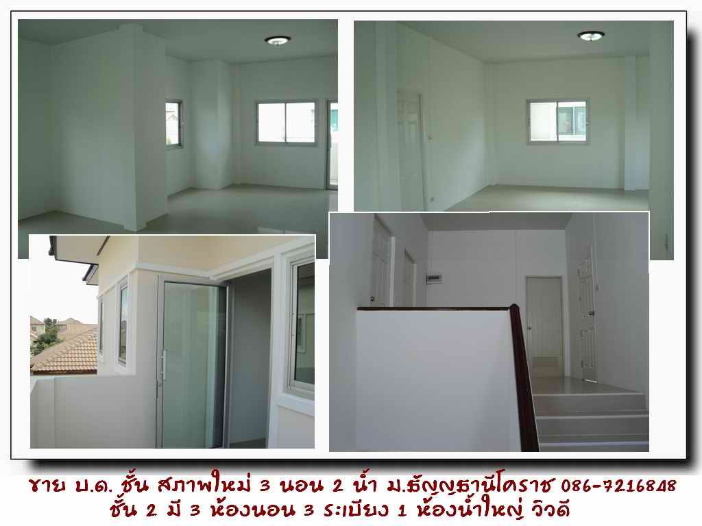 ขายด่วน บ้านเดี่ยว 2 ชั้น 54 ตรว. 3 ห้องนอน 2 ห้องน้ำ 1 ห้องรับแขก 1 ห้องครัว จอดรถได้ 2-5 คัน ม.ธัญญธานี ติดถนนมิตรภาพ-ขอนแก่น ต.จอหอ โคราช