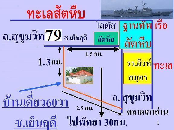 ขายบ้านเดี่ยว ชั้นเดียว 60ตารางวา(พื้นที่ 155ตรม.) ดาวน์ 100,000,เข้า Bank1.2 ล้าน สัตหีบ ซ.79 ชลบุรี(ซ.เย็นฤดี) บ้านหัวมุมถนน 3นอน 2น้ำ น้ำประปา+ไฟฟ้า+มุ้งลวด และเหล็กดัด มีหลังคารอบบ้าน อากาศดี น้ำไม่ท่วม