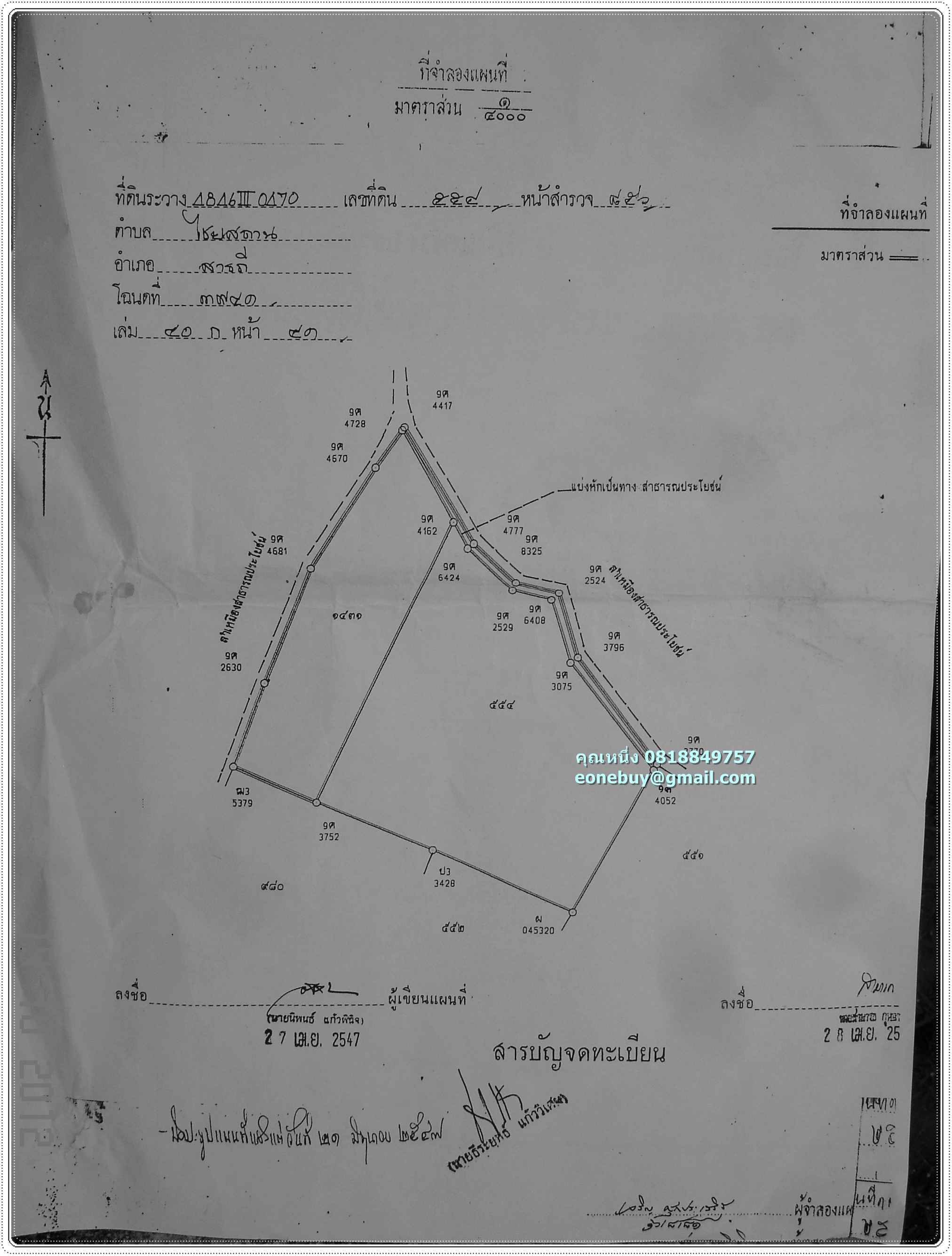 [email protected] ® ขอบคุณคะ If you are interested please contact. k.Nueng 0818849757. √ ต้องการขายที่ดินเปล่าต.ไชยสถาน หลังไทวัสดุสาขาเชียงใหม่ โฉนดที่ 3941 เลขที่ดิน 554 บ.ต้นโจ้ก ม.2 ต.ไชยสถาน อ.สารภี จ.เชียงใหม่ 50140 Land for Sale behind The Thaiwatsadu Chiang Mai branch. The Land Act 3941, No. 554. Ton Chok village 2 Chaiyasathan sub-district, Sarapee district, Chiang Mai province Thailand 50140 พื้นที่ประมาณ 2088 ตารางวา หรือ 5ไร่88วา 2088 meters or 5 acres 88 meters. อยากขายราคาไร่ละ2.5ล้านบาท/ 2500000 (ยินดีพิจารณาทุกข้อเสนอคะ) It sold 2.5 million Baht /acre. (willing to consider all offers here). พิกัดภูมิศาสตร์/Geographic coordinates 18 43 45.4,99 2 30.4 แผนที่/Map http://goo.gl/maps/1hhFN การเดินทางไป แผนที่มี 3แบบ/There are 3 types map to landmarks. 1. เสน่ห์ชายน้ำ จ.เชียงใหม่ ไป ที่ดินที่ต้องการขายหลังไทวัสดุ http://goo.gl/maps/e6A77 2.1 เสน่ห์ชายน้ำ จ.เชียงใหม่ ไป วัดต้นโชคหลวง อ.สารภี จ.เชียงใหม่ http://goo.gl/maps/cBZnn และเดินทางต่อ 2.2 วัดต้นโชคหลวง อ.สารภี จ.เชียงใหม่ ไป ที่ดินที่ต้องการขายหลังไทวัสดุ http://goo.gl/maps/kyIFP 3. แบบรวม เสน่ห์ชายน้ำ จ.เชียงใหม่ ไป วัดต้นโชคหลวง อ.สารภี จ.เชียงใหม่ ไปจบที่ ที่ดินที่ต้องการขายหลังไทวัสดุ http://goo.gl/maps/eUcB3 ที่หมาย : เลี้ยวซ้ายเข้าซอย5ตรงข้ามดงกล้วย ข้ามสะพานเล็กๆมา ตรงไป เจอ3แยกตัวYแรก เฉียงซ้าย อีกนิดก็ถึงแล้ว สังเกตศาลพระภูมิและต้นกล้วยขวามือ Turn left into Soi 5 opposite the banana plantation. Cross the bridge into Soi 5. Go straight across the first of the three splits Y. It's a little more to it. That spirit and banana trees on the right. ชมภาพเพิ่มเติม/See more photos. https://picasaweb.google.com/eonebuy/pxLZDG ท่านใดสนใจกรุณาติดต่อ คุณหนึ่ง 0818849757 ®