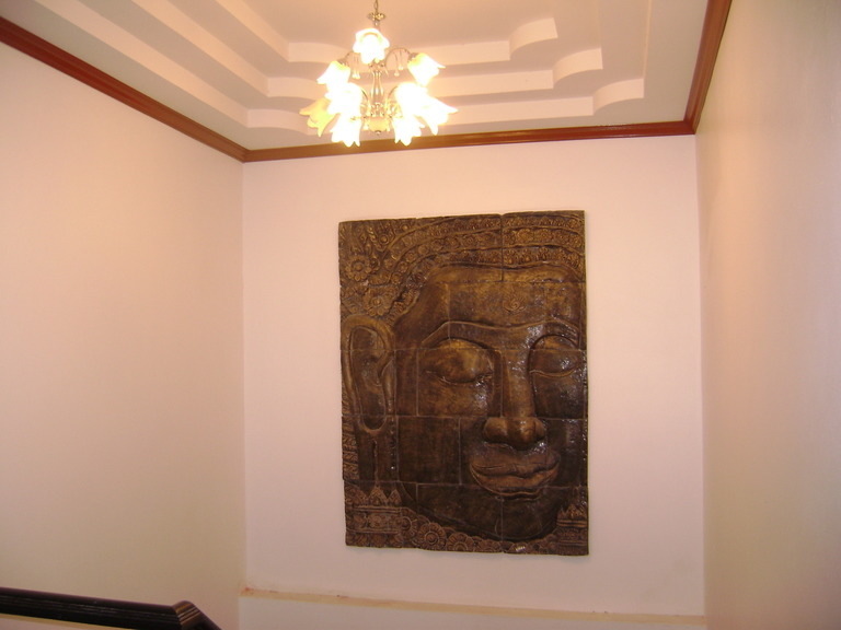 ตรงบันไดลงมาชั้นล่างตกแต่งด้วยโคมไฟ และภาพตกแต่งขนาดใหญ่เป็นภาพศิลปะสมัยขอมหาดูได้ยาก ห้องนอนชั้น 2 มีบันไดส่วนตัวลงมาสระว่ายน้ำด้านหลังบ้าน