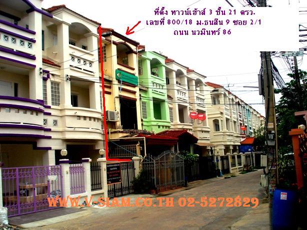 ทาวน์เฮ้าส์ 3 ชั้นติดโลตัส นวมินทร์ 86 ราคาถูก ต้องการขายด่วน