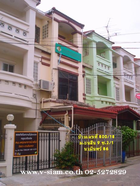 ขายทาวน์เฮ้าส์ 3 ชั้น 21 ตารางวา 3 ห้องนอน 3 ห้องน้ำ หมู่บ้านธนสิน 9 ถนนนวมินทร์ 86 ติดโลตัสสำนักงานใหญ่(โลตัสสุขาภิบาล 1) บ้านอยู่ซอย 2/1 ปัจจุบันหมู่บ้านธนสิน 9 เปลี่ยนเป็นโครงการของพฤกษาแล้วครับ มีทั้งโครงการ เดอะแพลน และโครงการ เดอะรีโน่ ราคาของโครงการขายขั้นต่ำที่ 2.35 ล้านบาท แต่หลังนี้เราขายต่ำกว่าทุนเพียง 1,850,000 บาทเท่านั้น –ขายตามสภาพครับ ติดต่อ นนท์ 087-6888-500 / 02-5272829 ชมรายการทรัพย์สินที่ http://www.v-siam.co.th หรือ ฝากข้อความที่