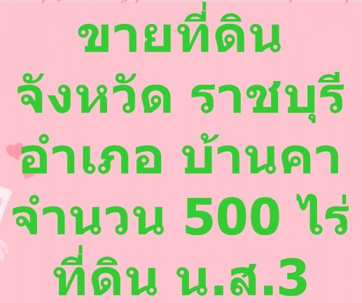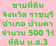 ขายที่ดิน จังหวัด ราชบุรี อำเภอ บ้านคา จำนวน 500 ไร่ ที่ดิน น.ส.3