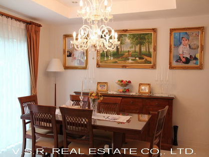 3 นอน, 3 น้ำ, ห้องรับแขก, ห้องคนใช้, ที่จอดรถ 2 คัน, แอร์ 6 เครื่อง, หน้าบ้านหันไปทางทิศใต้, วัสดุปูพื้นชั้นล่างกระเบื้อง, ชั้นบนปาร์เก้, สัญญาณกันขโมย, สโมสร, ฟิตเนส, สระว่ายน้ำ, สวน, บ้านสวย, ตกแต่งพร้อมอยู่,