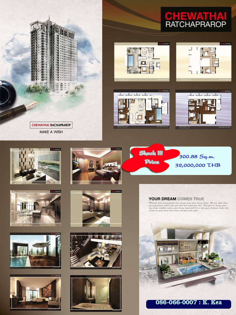 ขายห้อง PENTHOUSE โครงการชีวาทัย ราชปรารภ ขนาดพืนที่ 300.88 ตรม. ราคา 32,000,000 บาท ติดต่อ คุณเก๋ 086-066-0007