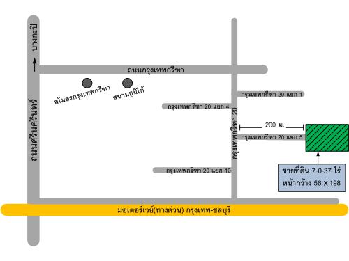 ขายที่ดินกรุงเทพกรีฑา 20 แยก 5 เนื้อที่ 7-0-37 ไร่ หน้ากว้าง 56x198 เมตร