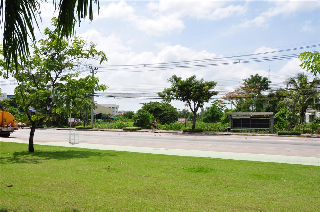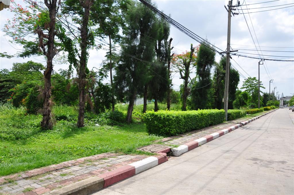 ที่ดินหน้ากว้างด้านหน้า (ติดถนนเฉลิมพระเกียรติ์ ร.9) 86 เมตร, ที่ดินหน้ากว้างด้านหลัง 63 เมตร, ที่ดินลึก (ด้านขวาติดสำนักงานพัฒน์กล) 197 เมตร, (ด้านซ้ายติดทางสาธารณะ) 232 เมตร