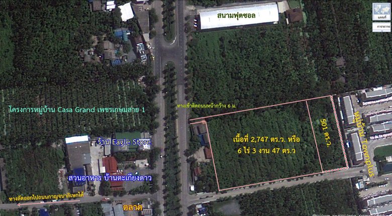 ขายที่ดินติดถนนพุทธมณฑลสาย 1 เนื้อที่ 2,747 ตร.ว. (6-3-47 ไร่) หน้ากว้างติดถนน 6 ม.