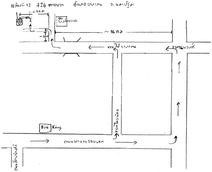 ขายที่ดินถมแล้วเป็นโครงการของสหกรณ์เคหเกษตรและสหกรณ์จำกัด เนื้อที่ 426 ตารางวา อยู่ตำบลบางภาษี อำเภอบางเลน จังหวัดนครปฐมใกล้ถนนวงแหวนรอบนอกบางใหญ่เข้าทางแยกนพวงศ์หรือแยกไทรน้อยก็ ได้ (ตามแผนที่) เข้าซอยวัดรางกำหยาด จากถนนที่ไปบางเลนประมาณ 2 กิโลเมตร ขายตารางวาละ 2,000 บาท ขายรวม 840,000 บาท สนใจต่อรองได้ ติดต่อ ตั้ม โทร 086 599 3435