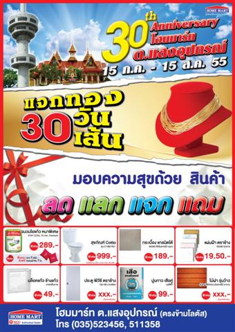 สุพรรณบุรี โฮมมาร์ทต.แสงอุปกรณ์ ฉลองรับ30ปี กับโปรโมชั่นสินค้าวัสดุก่อสร้างราคาพิเศษ!!!!