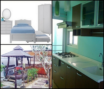 3.ชุดครัวบิลว์ 1 ชุด + พื้นกระเบื้องลายไม้