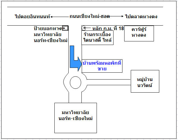 ตั้งอยู่ที่ ถนน เชียงใหม่ - ฮอด หน้ามหาวิทยาลัย นอร์ทเชียงใหม่ และ หมู่บ้าน นวรัตน์