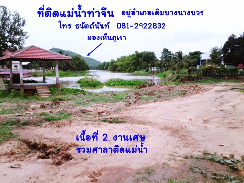 ต้องการขายที่ดินติดแม่น้ำท่าจีน จ.สุพรรณบุรี เนื้อ 2 งาน 19 ตารางวา ราคา 12000000(หนึ่งล้านสองแสนบาทถ้วน) มีศาลาริมน้ำให้ มีโฉนด และทางเข้า ที่ดินสวย มองเห็นวิวภูเขา อยู่หลังอำเภอเดิมบางนางบวช